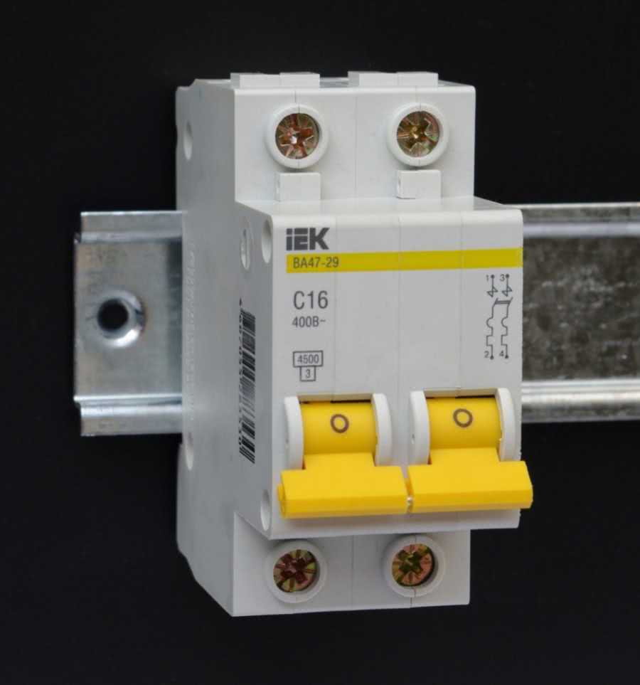 Важным свойством аппаратуры модульной серии является то, что ее крепление унифицировано. Вспомним, как крепились к поверхности старые автоматические выключатели. Для этого приходилось сверлить отверстия, иногда даже нарезать в них резьбу. А также использовать крепежные изделия: винтики, гаечки, шайбочки. Мало того, что это неудобно, но еще и небезопасно. В электрощитке, часть которого находится под напряжением, замена автоматического выключателя производится с известной долей риска. Оброненный винтик может замкнуть фазу на корпус и устроить короткое замыкание. А уронить его может как дилетант, так и профессиональный электрик.