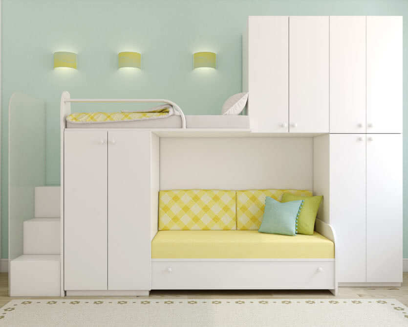 При оформлении комнаты можно интегрировать максимальный объем светлых красок, благодаря чему произойдет визуальное увеличение площади помещения и оптимизируется психика подрастающего ребенка.