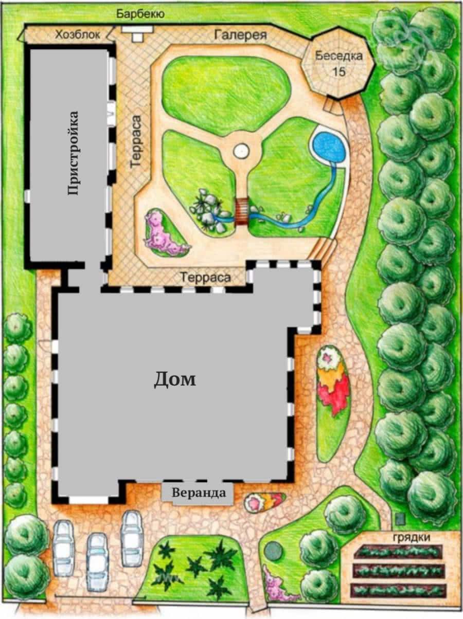 Итак, при проектировании дизайна на участке площадью 6 соток важно определиться, какие объекты наиболее значимы и желаемы для полноценного активного отдыха. Это может быть сад, огород, зона тихого и активного отдыха, летняя кухня под навесом, детская площадка
