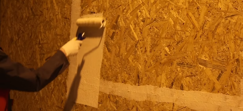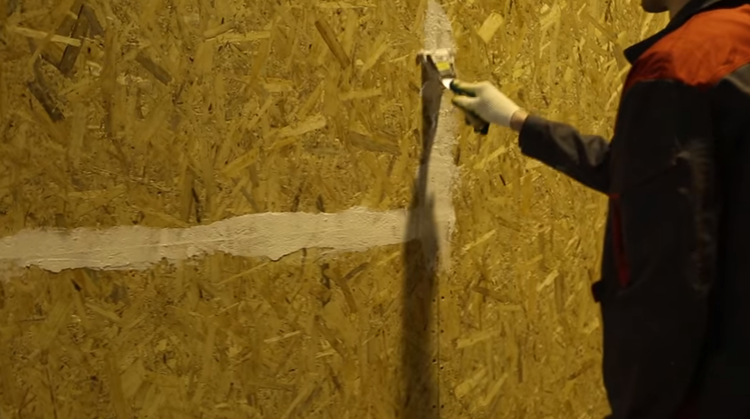 Шаг 1. Шпатлевание швов между плитами ОСБ.