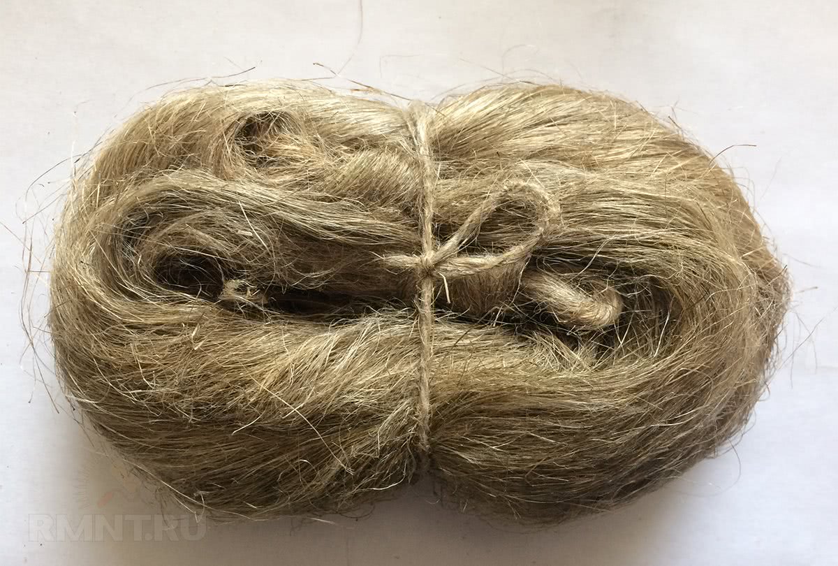 Второй вид намотки — льняная пакля. Применяется со смачиванием масляной краской или специальным герметиком. Особенность пакли в том, что льняные волокна набухают при контакте с водой, уплотняя резьбовое соединение. Недостаток пакли в органическом происхождении, чем вызвана вероятность гниения и потери герметичности.
