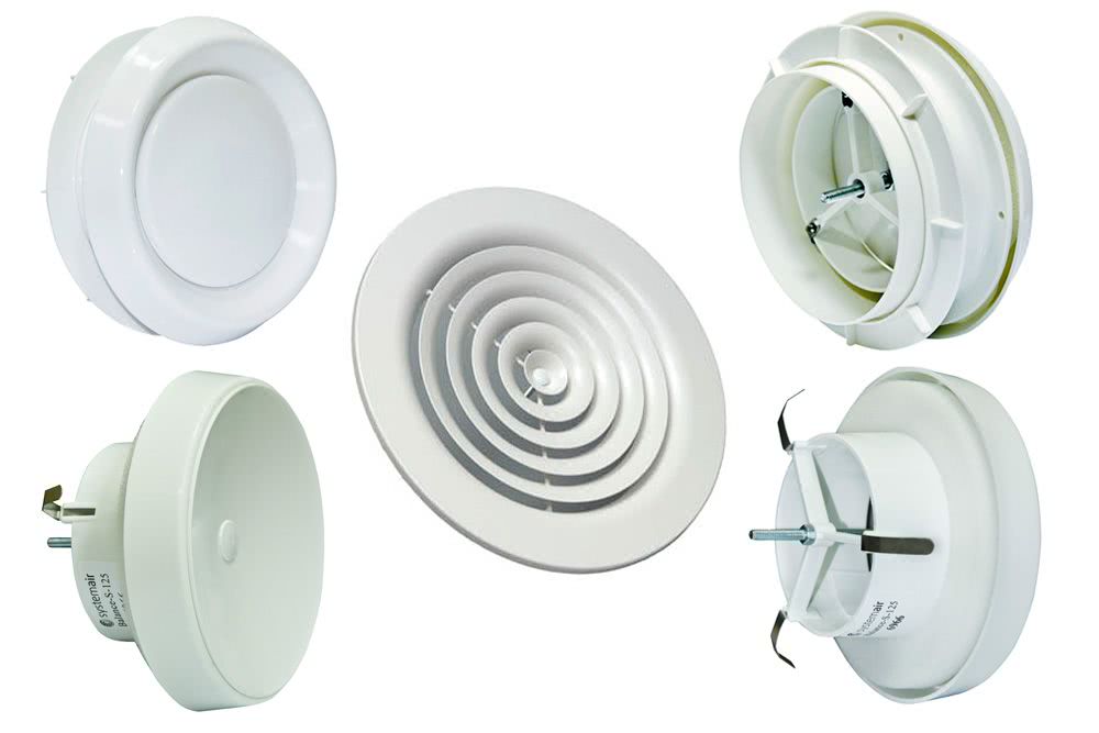 Благодаря этому проходящий внутрь помещения воздух распределяется вдоль поверхности (стены или потолка — не важно). Вытяжные: имеют выпуклую (в сторону помещения) тарелку