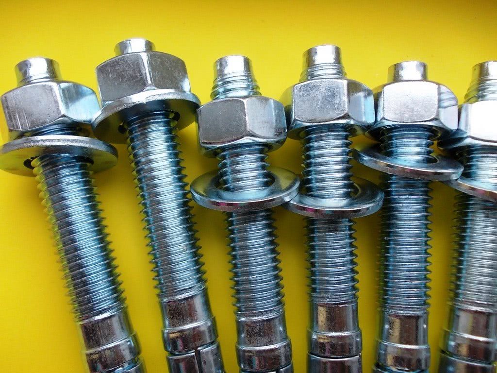 - Клиновой анкерный болт. Фиксируется по принципу распирания отверстия. В этих крепежах на конце есть клин, который в сочетании с крепежной втулкой обеспечивает надежного соединения в бетонной конструкции. Для правильного монтажа нужно монтировать болт глубоко. Чтобы, даже прилагая чрезмерную силу, невозможно было его вытащить. Отверстие должно быть примерно на 1,6 см глубже, чем длина самого болта.