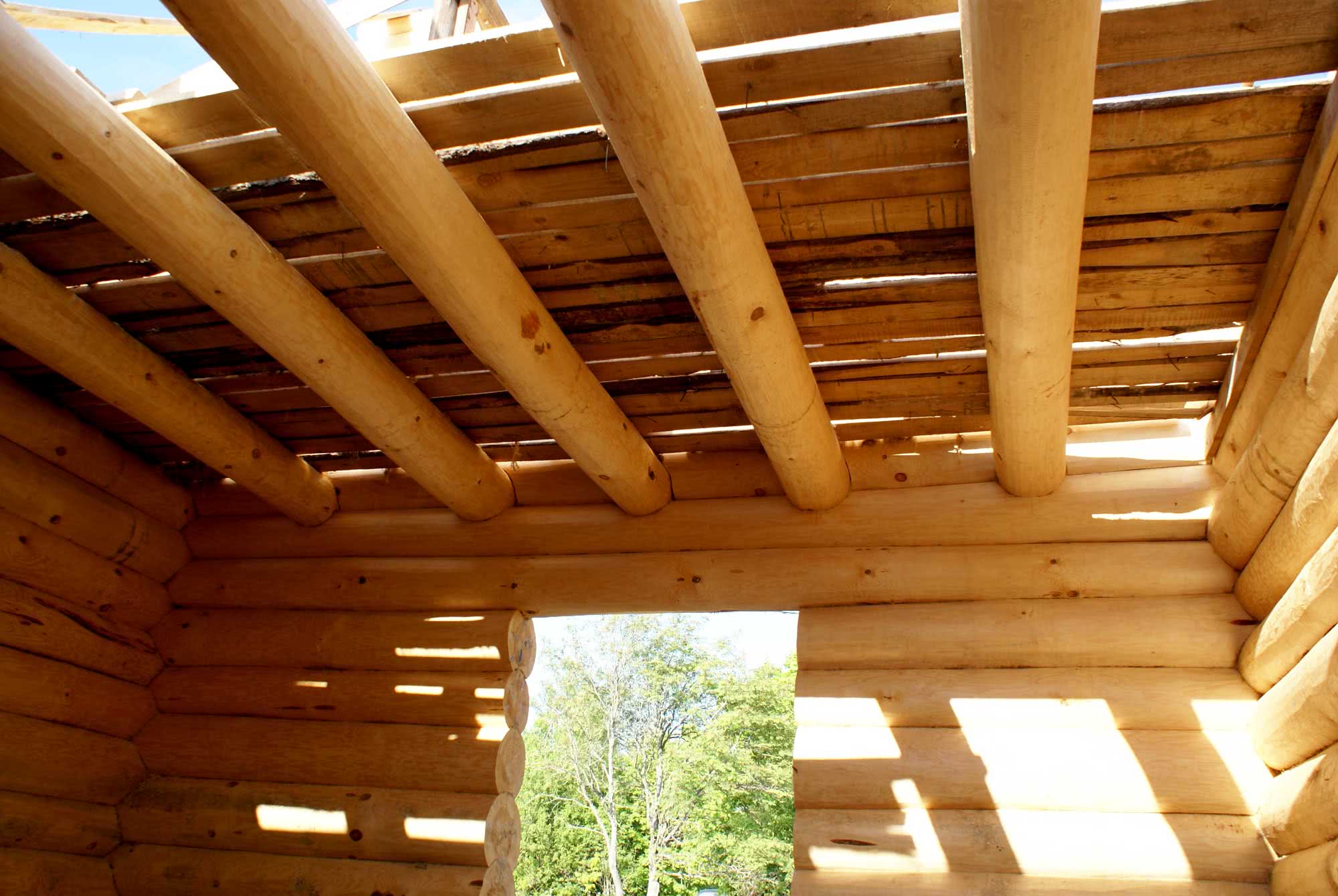 Перекрытие из цельных бревен