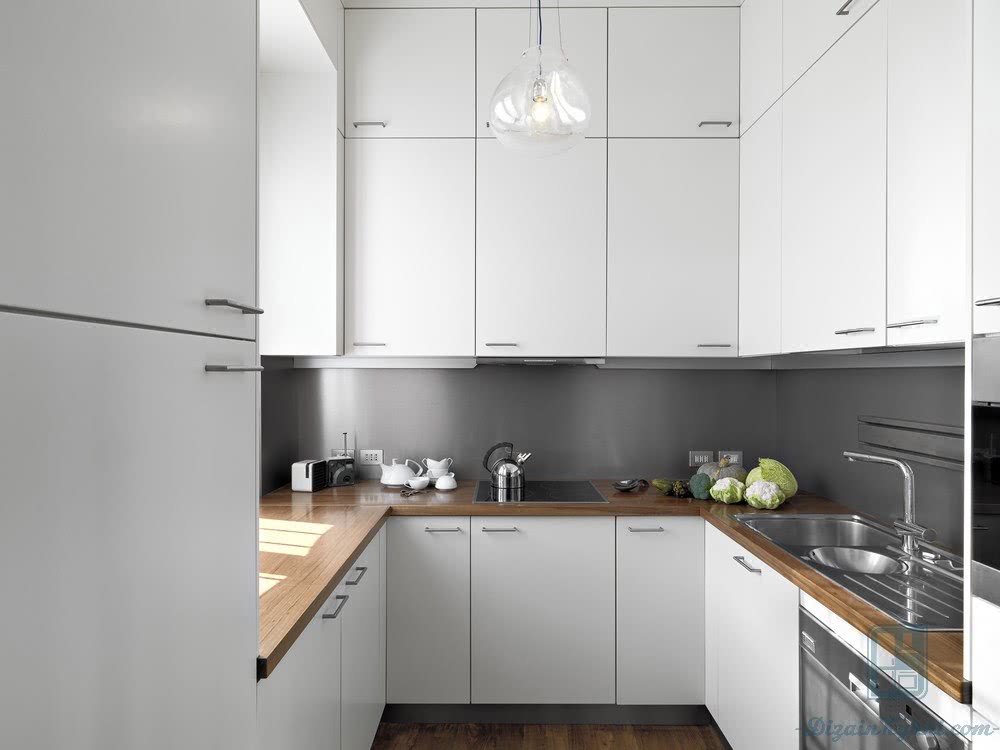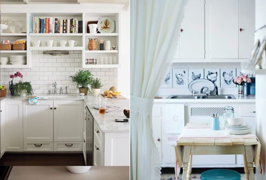 Если речь идет о совсем маленькой кухоньке, то здесь альтернативы нет: белый используется и в отделке, и в меблировке.