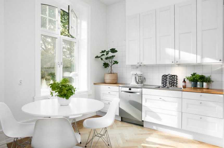 Белый может стать проблемой для тех, кто хочет использовать его для украшения своего дома. Белая мебель увеличит пространство, что особенно полезно для небольших кухонь. Если вы используете белую мебель, высокую и с зеркалами, это ощущение пространства будет еще более выраженным и придаст свежесть комнате.