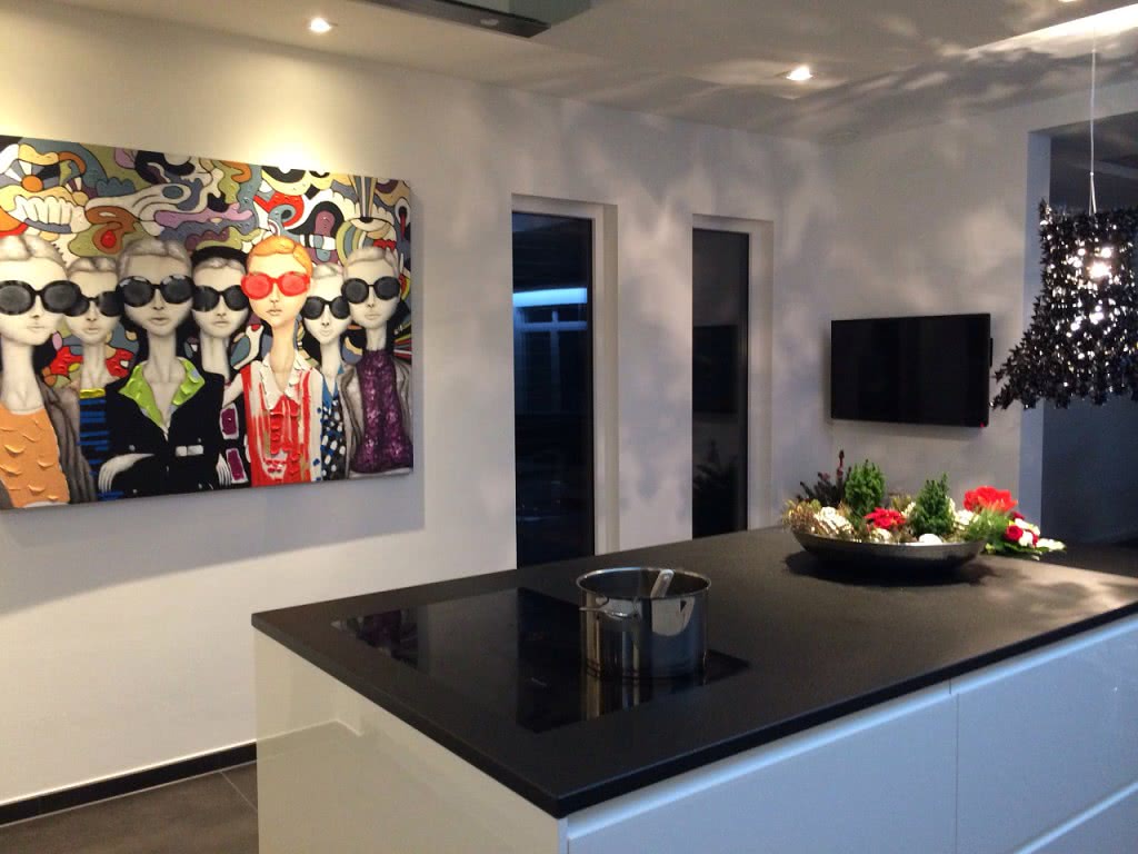 Белые стены можно украсить с помощью картин, выполненных в стиле «поп-арт».