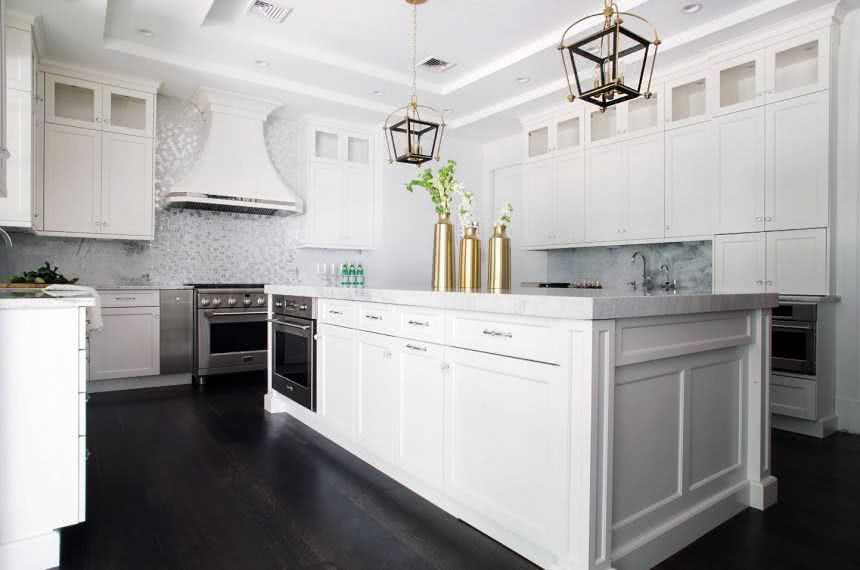 Естественный свет лучше всего подходит для выделения белой кухонной мебели, но прямой солнечный свет вредит цвету. Лампы накаливания придадут комнатам теплую атмосферу и избавят от беспокойства от ощущения холода, которое может создать преимущественно белый интерьер. Вы можете использовать встраиваемые прожекторы для кухни, светильники и непрямое освещение.