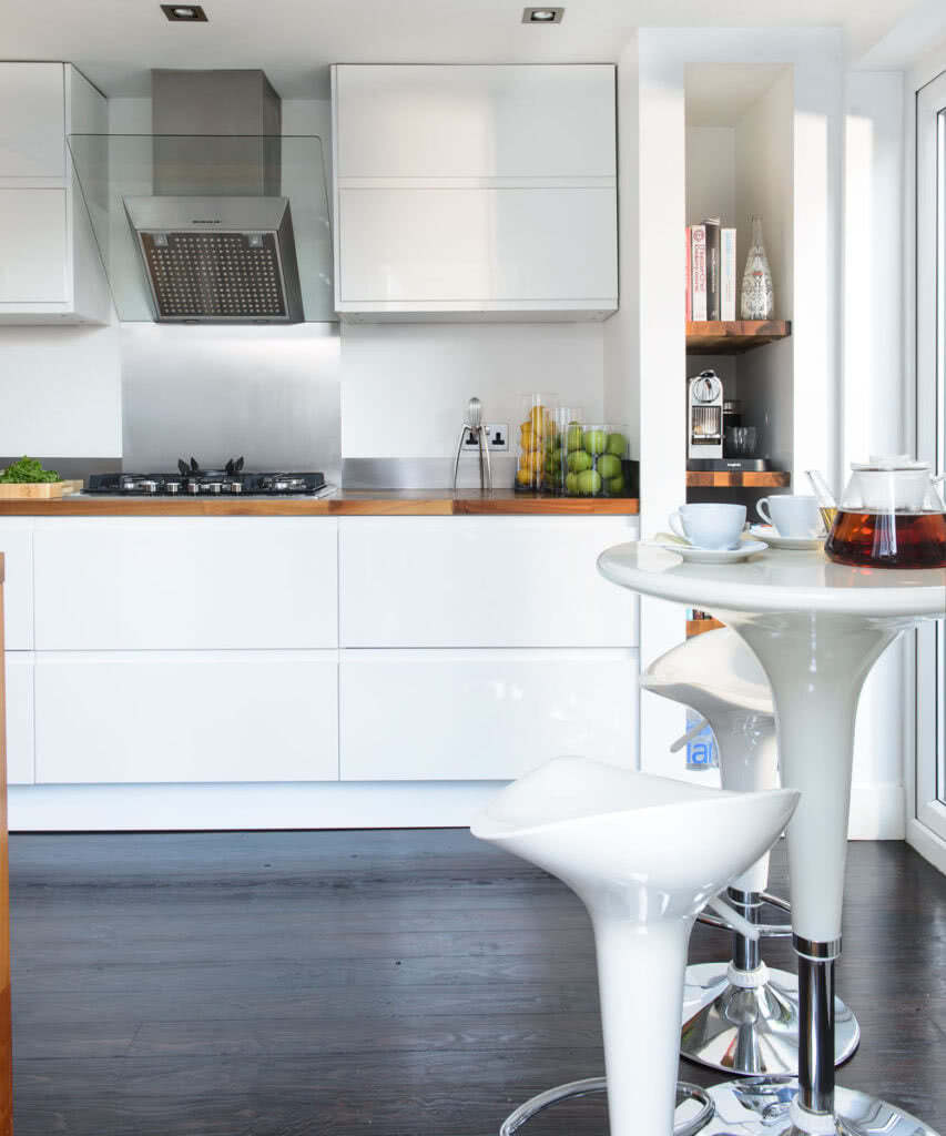 - белый цвет визуально расширяет пространство, а глянцевые поверхности наполняют его солнечным светом.