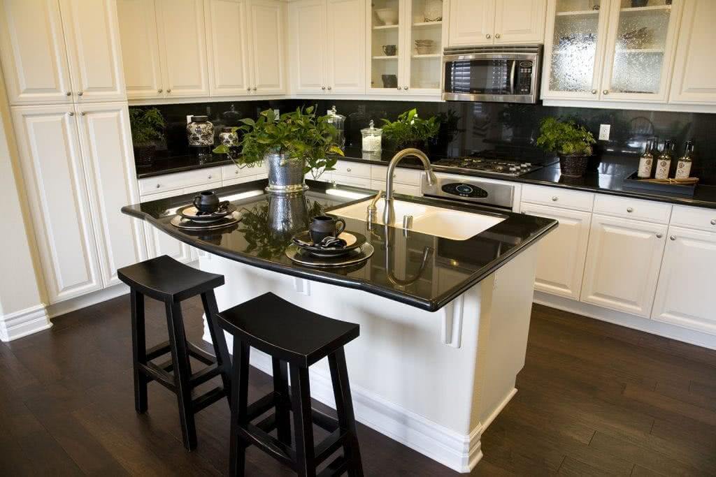 Преобладание того или иного цвета в первую очередь зависит от габаритов помещения. В просторных хорошо освещенных комнатах черно-белый гарнитур можно дополнить черной обеденной группой.