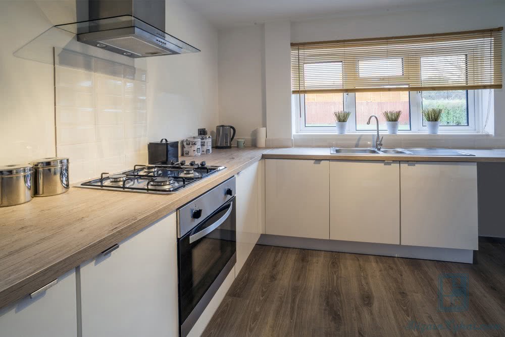 - Визуальное увеличение пространства. Благодаря преобладанию белого цвета в оформлении, кухня будет выглядеть значительно просторнее. Это особенно актуально для небольших помещений. В больших кухнях эффект тоже присутствует, поэтому тут белый можно разбавить не только деревянной столешницей, но и другими акцентами.
