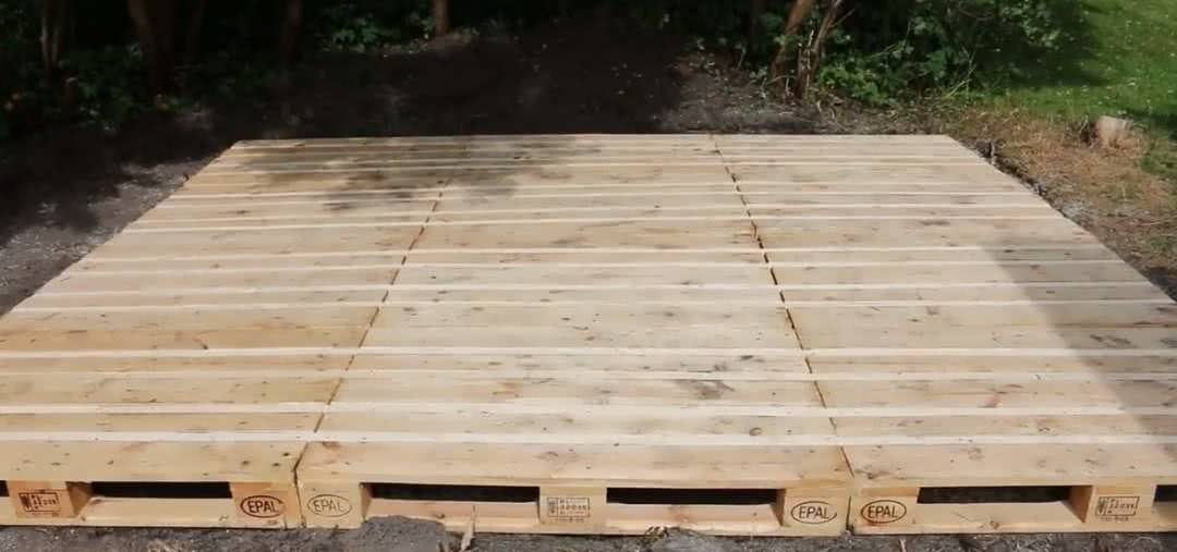 Беседка может быть сделана из цельных поддонов, опорных металлических или деревянных опор, процесс займет не более двух дней. Существует второй вариант: использование паллетов исключительно для возведения крыши и основания. Мастер класс подготовки участка: