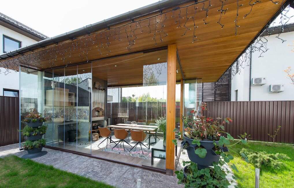 Закрытое пространство застекленной беседки выдвигает при использовании печи, мангала или барбекю несколько обязательных требований. К этим требования относится: