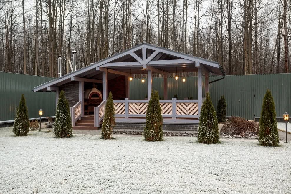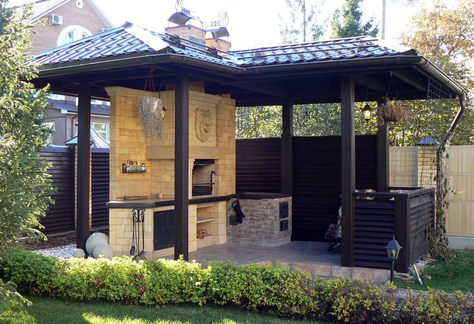 - удаленность от соседского дома: вряд ли соседи будут рады тому, что ваш мангал активно дымит и дым попадает к ним в дом; а вот обычная беседка без барбекю может располагаться в любом месте участка.