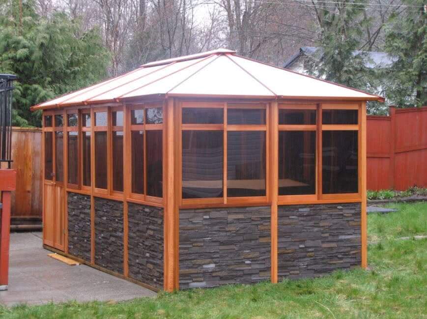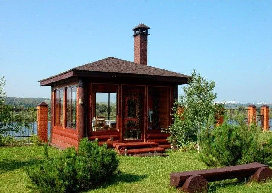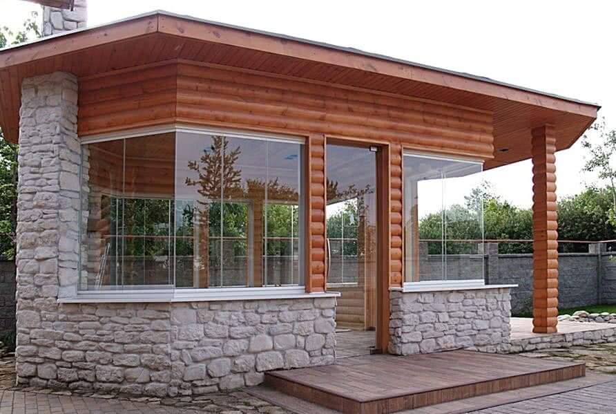 При строительстве сруба важно использовать негорючие материалы. Функциональны сооружения с остеклением, раздвижные алюминиевые секции станут интересным решением