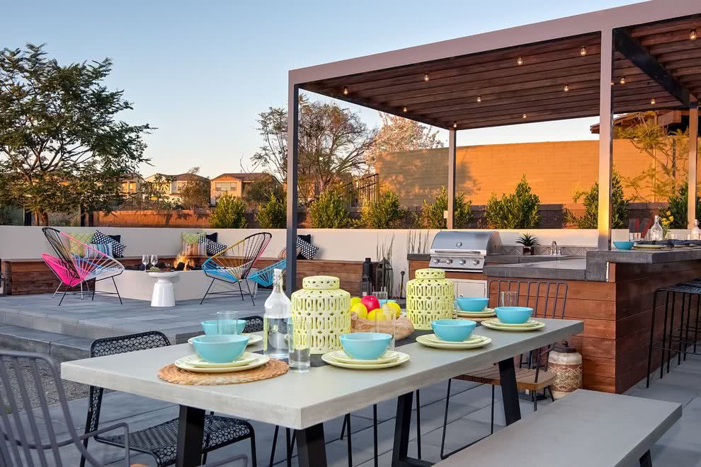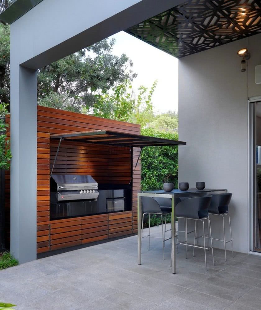- Разделите зону барбекю на 2 части: функциональную с печью и релаксационную — со столом и стульями/креслами. Релаксационную часть сделайте просторной, чтобы всем гостям было комфортно в ней расположиться.