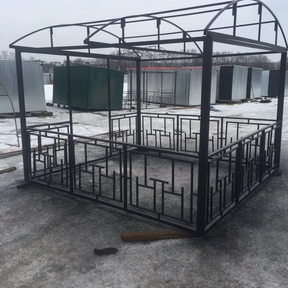Для сборной металлической беседки отдельно варят каркасы для каждой из сторон, потом собирают их при помощи болтов