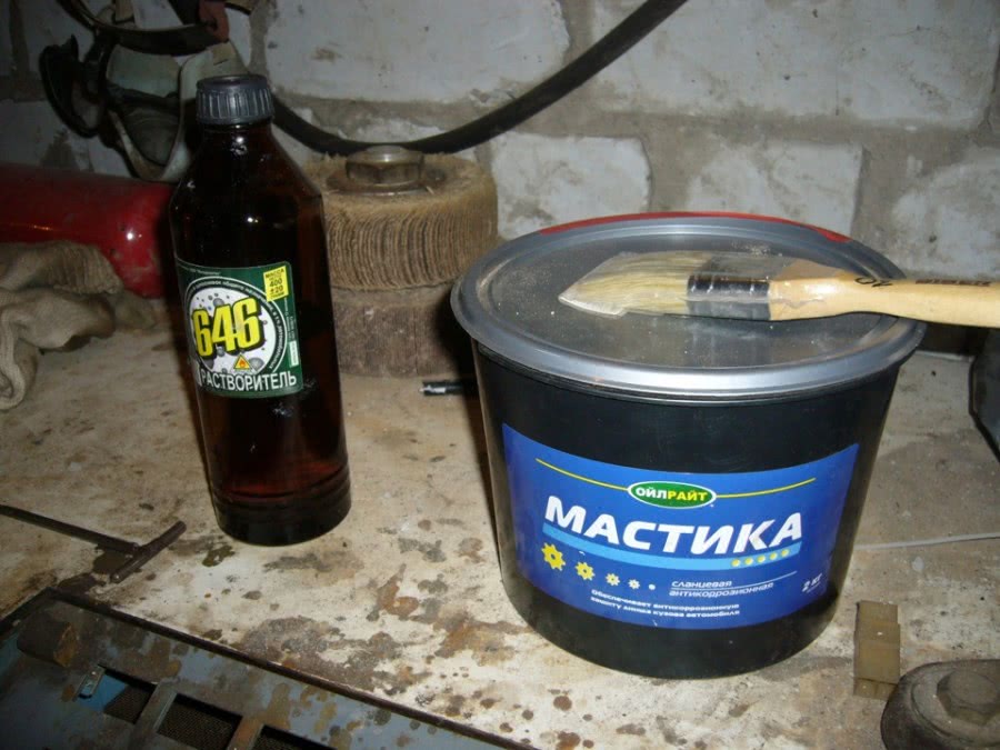 - Шаг 3. На очищенное основание наносим битумную смазку – кистями, распылителем, щетками или тряпками.