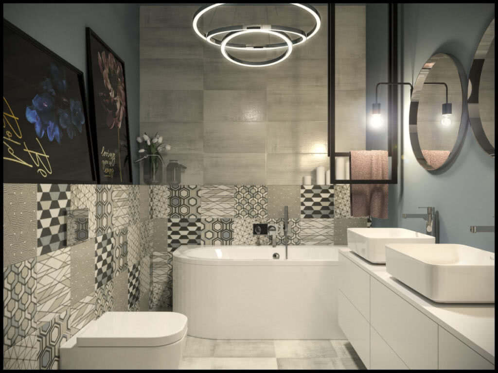 Одной из современных тенденций является сохранение цвета. Красочный минимализм компенсируется интересными дизайнерскими решениями, связанными, например, с графикой на фоне базовой плитки или завораживающими, интригующими конструкциями или игрой с различными поверхностями : матовыми, глянцевыми, полированными и структурированными. Таким образом, вы можете четко разделить отдельные пространства в ванной комнате, избегая цветовых и дизайнерских перегрузок.