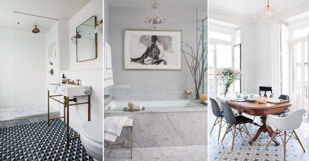 Чтобы создать впечатление большего пространства, рекомендуется монтировать плитки по диагонали. Она может выглядеть как камень, дерево или керамика, в зависимости от ваших предпочтений. Плитка может быть фарфоровой или глазурованной, разница между ними заключается в процессе производства.