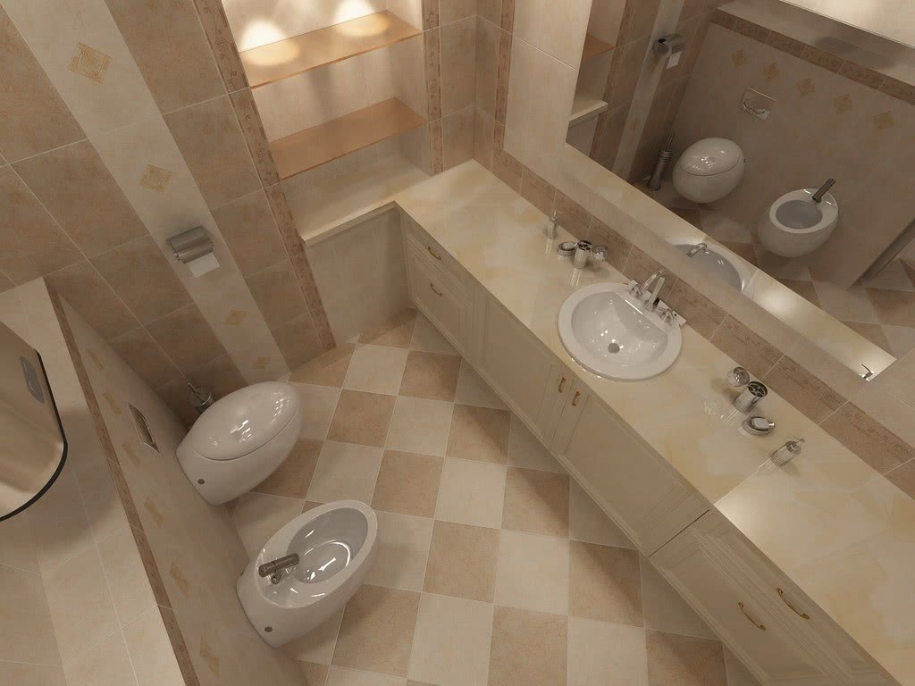 Оставшееся свободное пространство может занять шкаф для вещей и полотенец. Также в ванной большего размера можно установить унитаз с функцией биде, туалетный столик и другую мебель, в зависимости от желания владельцев.