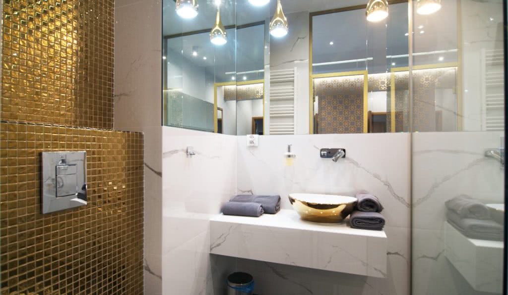 - Теплые тона в этих металлах принесут тепло и элегантность в ванную комнату.