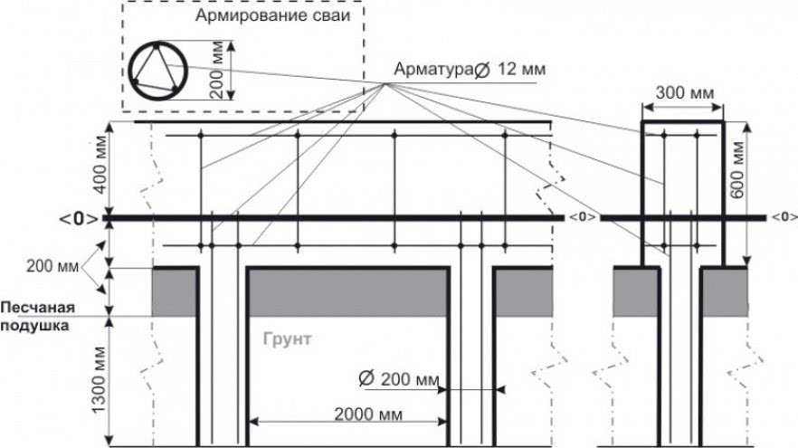 Конструкция такого фундамента содержит комплекс вертикально заглубленных свай и пояс обвязки, который принимает нагрузку, а затем передает ее на опоры.