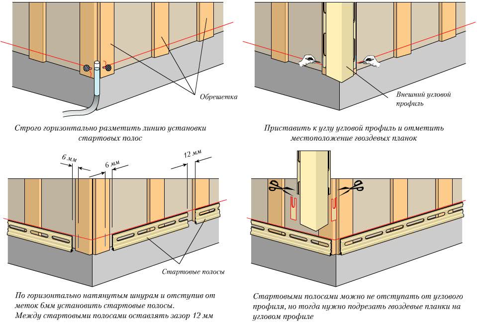 Общий сценарий монтажа сайдинга из винила включает в себя:
