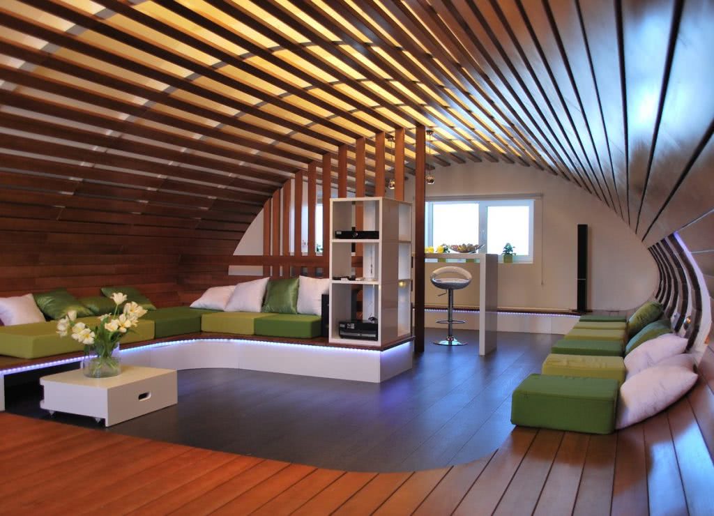 Вагонка не является единственным вариантом обшивки с использованием натурального дерева. Поэтому, возникает вопрос, как оформить мансарду, и в каком стиле?
