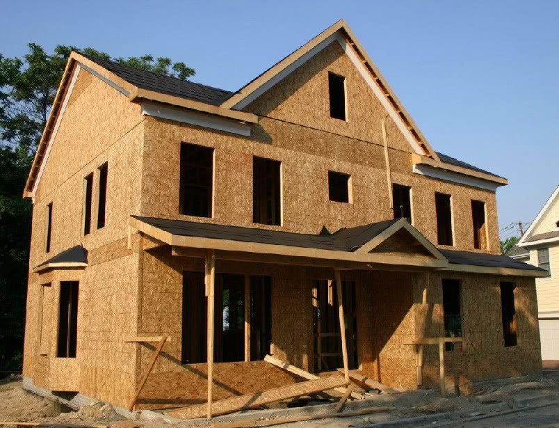 Дом с фасадом из ОСБ листов (имеют название — OSB и ОСП плиты)