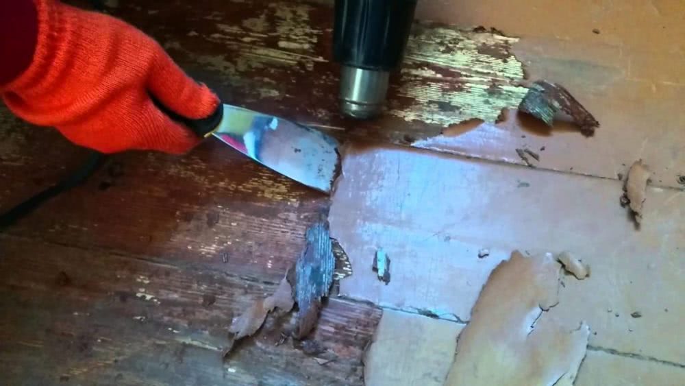 - Удаляют старое покрытие любым удобным способом: механическим, химическим, термическим.