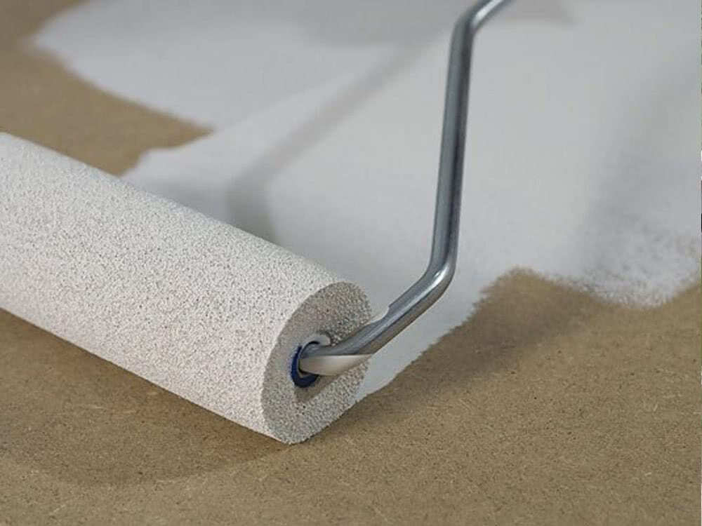 Грунтовка обеспечивает надёжное сцепление краски и верхнего слоя фанеры, отчего финишное покрытие служит намного дольше. Грунтовка может наноситься краскопультом или валиком, как удобно. Выбор первого элемента позволяет произвести операцию гораздо быстрее, выбор второго помогает создавать более плотный слой грунта.