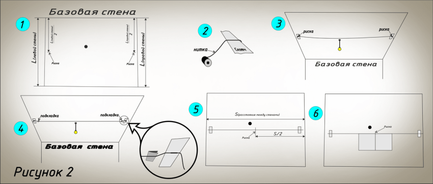 Схема разметки и оклейки потолочной плитки, начиная от угла помещения