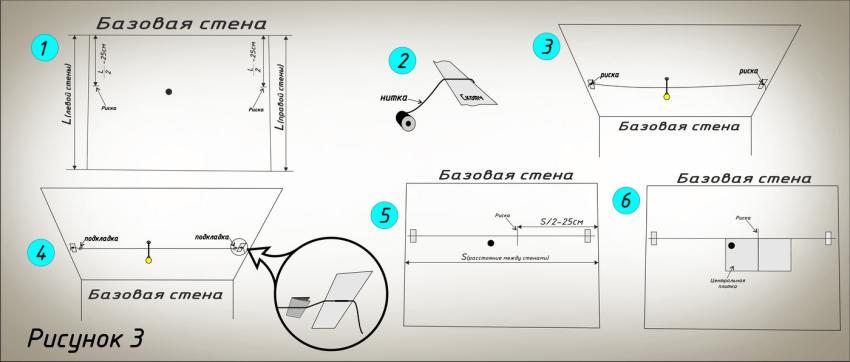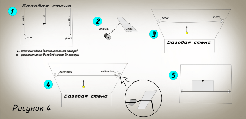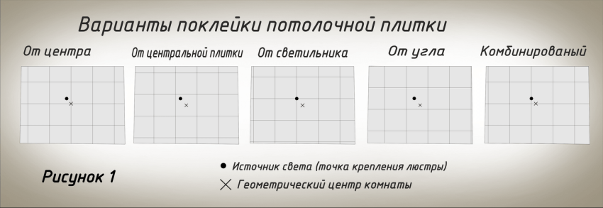 Варианты оклейки плитки для потолка: от светильника, от центра комнаты, от центра и от угла