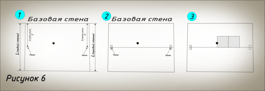 Разметка оклейки плитки, способом от центральной потолочной плитки