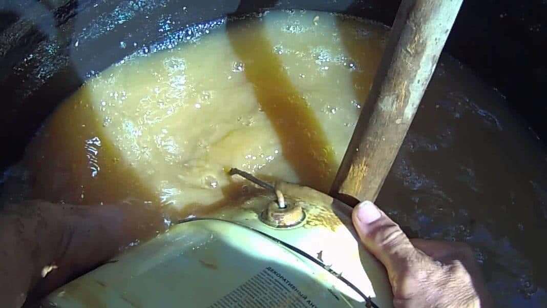 - Через сутки ее перемешивают, добавляя воду. Полученную смесь процеживают через сито с размером ячеек 3х3 миллиметра и отстаивают.