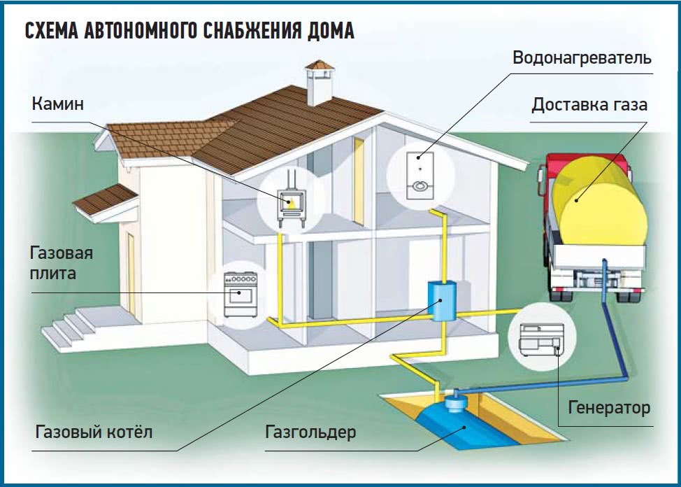 Эта автономная система представляет собой большой резервуар для хранения запасов газа, что позволяет не зависеть от государства и самостоятельно регулировать величину коммунальных платежей за газоснабжение. Заправив емкость один или два раза в год, в зависимости от объема бака, вы сможете спокойно пользоваться газовой печью для приготовления пищи и протапливать дом.