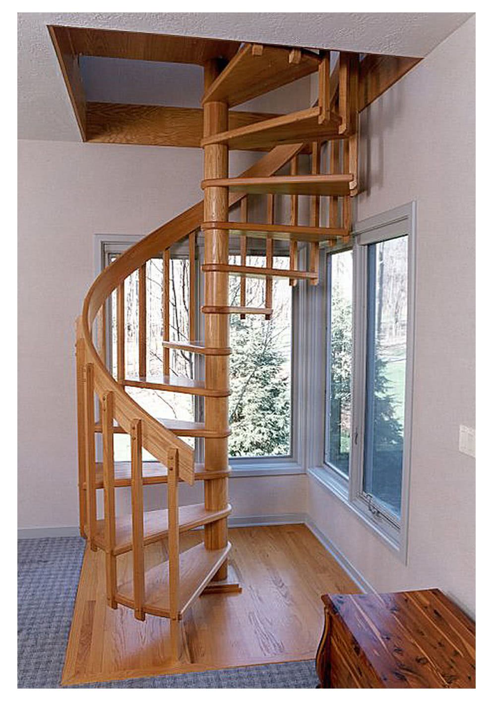 - Винтовые (спиральные) лестницы. Занимают очень немного полезной площади дома, эффектно смотрятся, но в эксплуатации неудобны, чаще используются как дополнительные и вспомогательные.