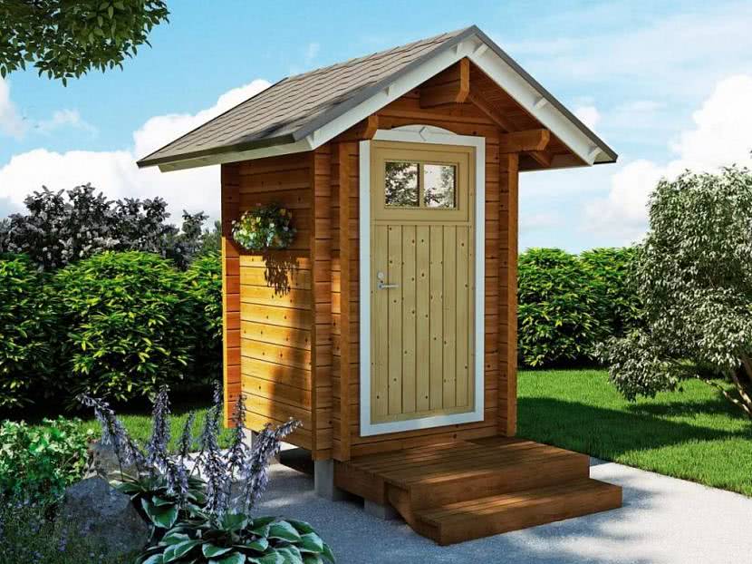 Самым простым, классическим типом деревянного туалета для дачи, сделанного своими руками, является туалетная кабинка «Скворечник». Она представляет собой невысокое строение со скошенной односкатной крышей, дверью и вентиляционным окошком. Такая постройка проста в исполнении и довольно экономична. Кроме этого, такой уличный клозет при необходимости можно легко перенести на новое место.