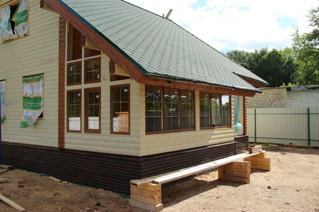 Идеальный вариант при устройстве такого крыльца – когда оно предусмотрено проектом. Это означает, что фундамент для него уже имеется. Остаётся сделать ступеньки для крыльца, поручни и навес. Да, и фундамент с опорным брусом – мауэрлатом, на который ляжет нижняя ступенька.