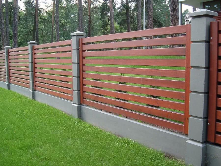 - Деревянный забор с использование бетонных столбов