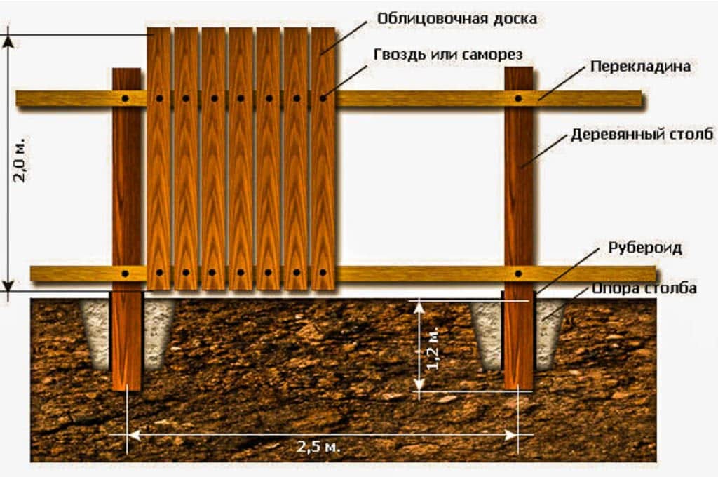 Когда делается деревянный забор своими руками, работа выполняется в несколько этапов.