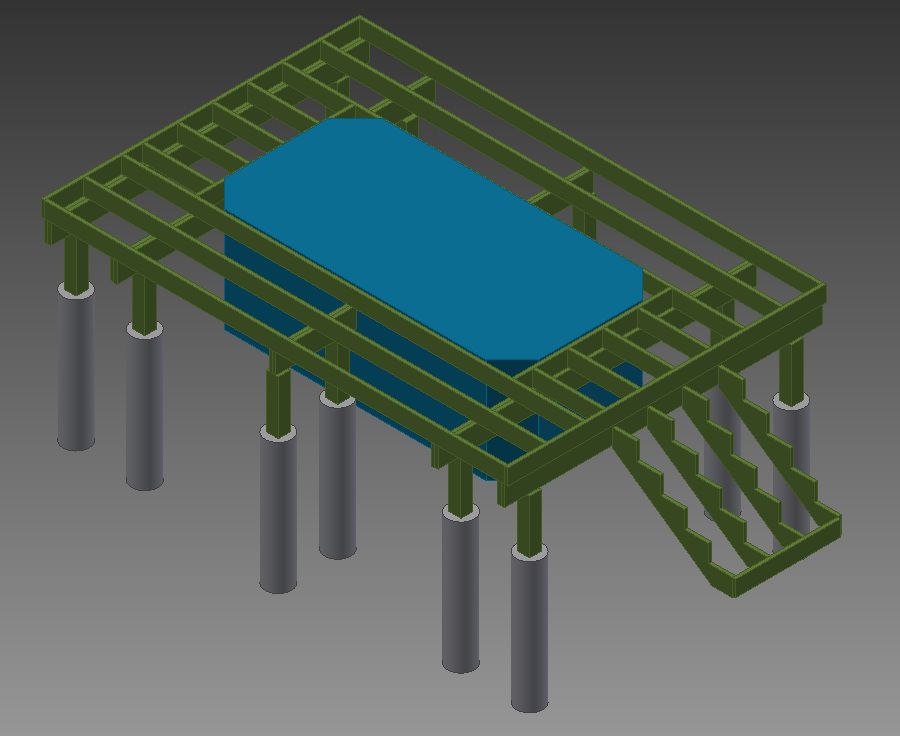 Иногда изготавливают металлический подиум с прочными опорными элементами (вертикальными, или собранными в виде ферм). Окончательный выбор зависит от возможностей владельца и условий рельефа.
