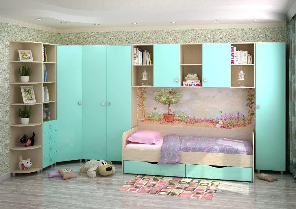 Спальная зона должна находиться в самом тихом месте в комнате. Детская кровать должна быть настроена так, чтобы ребенок чувствовал себя комфортно и безопасно. Поэтому в комнате для девочки кровать не должна стоять у окна или перед дверью, так как это будет нарушать ощущение покоя и утешения.