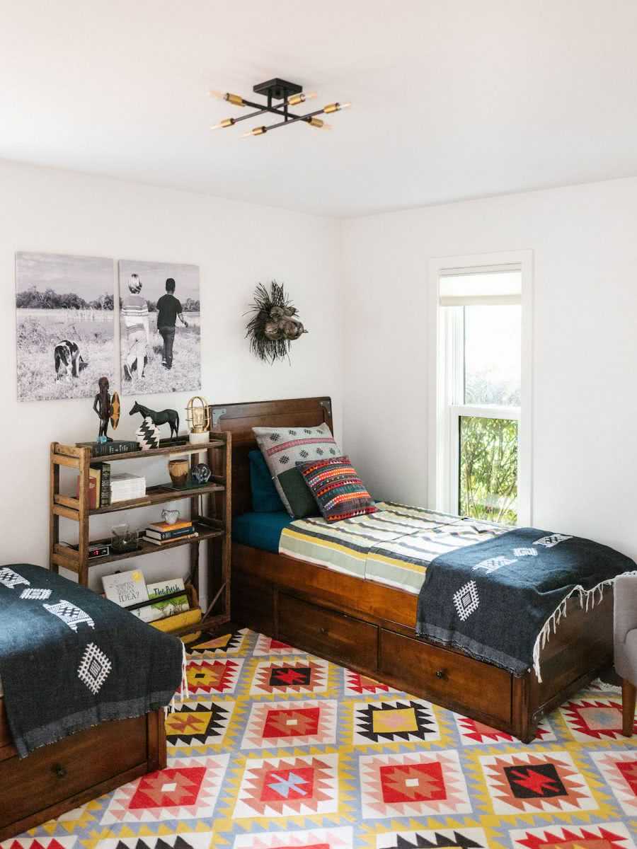 В дизайне интерьера можно использовать необычные сочетания цветов в текстиле и обивке. Для девочки идеальным решением будет наличие цветочного орнамента и кружева, а для мальчика предпочтительнее геометрические фигуры и четкость линий. Конечно, здесь все зависит от возраста и количества детей, проживающих в комнате.