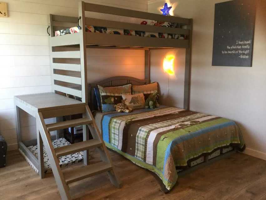 - Если дело касается мебели, то стоит выбирать прочные модели, которые будут служить долгое время. Если детей двое, можно остановить выбор на многоярусных кроватях. Место будет сэкономлено, а детям может понравиться такой вариант для спального места.