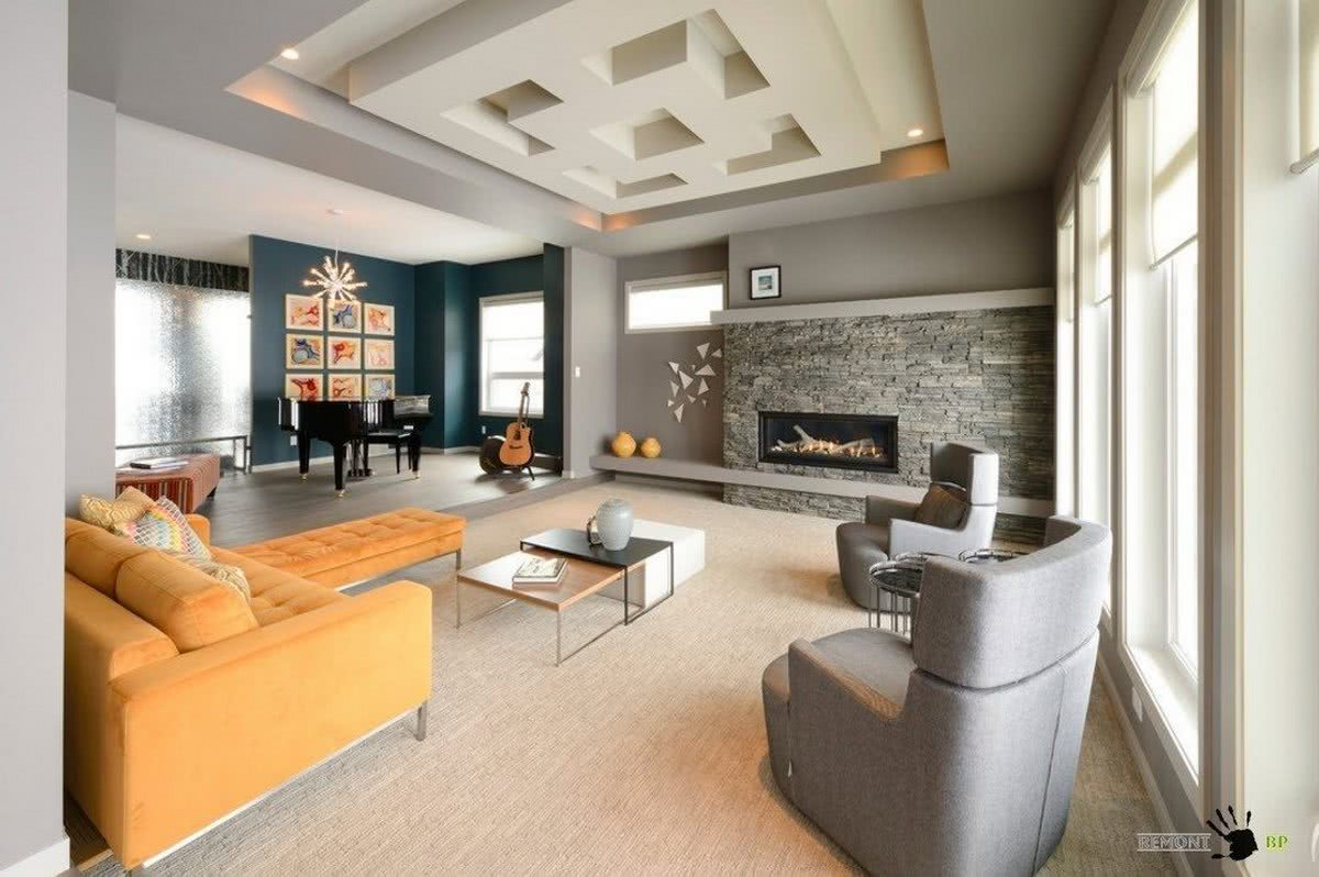 В гостиные зоны отлично впишутся современные типы обустройства. Подобная концепция подразумевает простоту, многофункциональность, удобство. Основное место в таком оформлении занимают прямые линии, разные поверхности, геометрические четкие формы. В дизайне комнат такого вида не следует использовать слишком большое количество декоративных предметов, это может нарушить стилистический замысел.