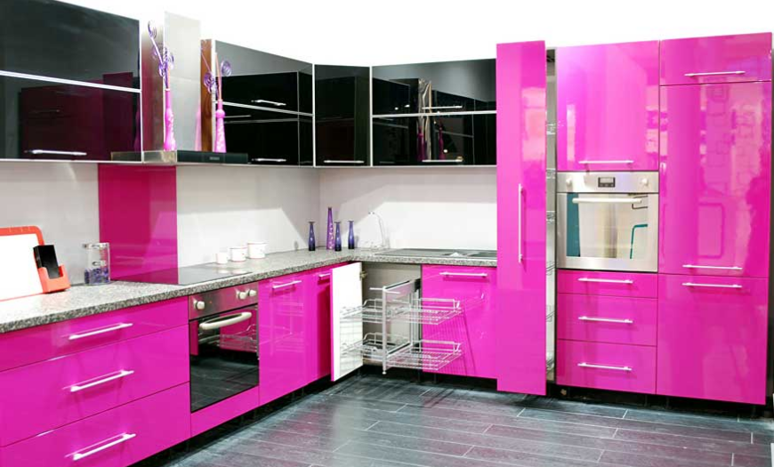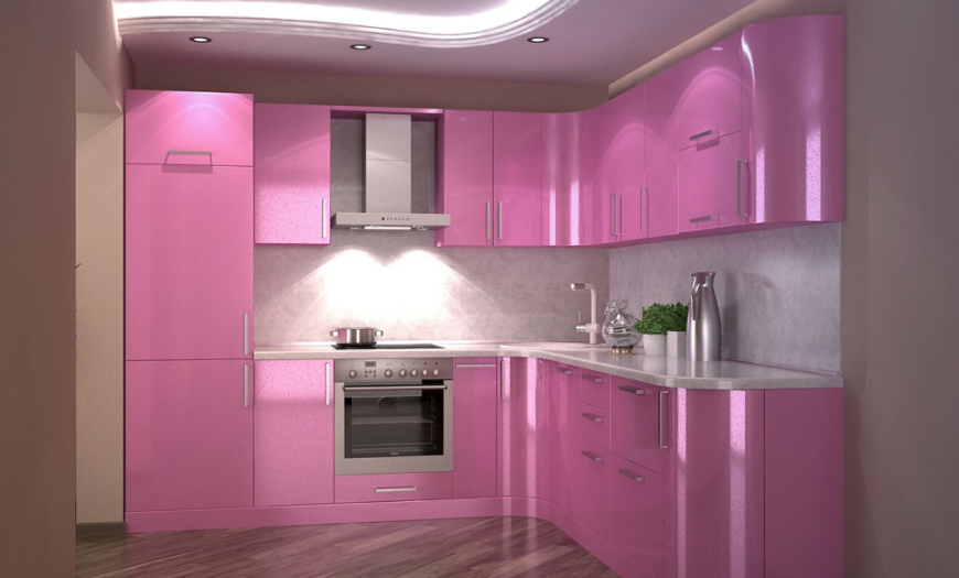Такая палитра встречается на кухне редко, т.к. считается детской и неподходящей для этой части дома. Однако правильно оформленный дизайн в розовых оттенках выглядит гармонично и элегантно. Главное — правильно совместить его с другими тонами.
