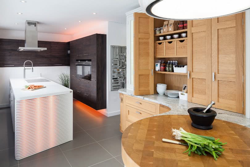 Помимо практичных и удобных систем сегрегации, на модных кухнях к 2021-2022 году появится множество других современных решений. К ним относятся, например, бесшумное закрывание двери или газлифтная система, облегчающая открывание.