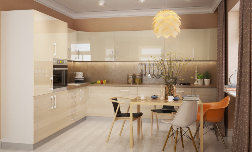 Оттенки бежевой группы хорошо интегрируются в разные направления стиля. В качестве исключения рассматриваются варианты хай-тек и техно, поскольку там используются холодные тона. Бежевая кухня выглядит уютно и элегантно.